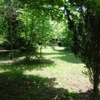 Het perceel is omringd door bomen en struiken maar
