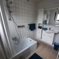 Het toilet bevindt zich in de badkamer met ligbad.