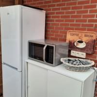 In de ruime keuken vind je een kookvuur, Senseo, waterkoker, broodrooster, magnetron met klein oventje en een kleine koelkast.