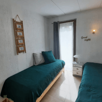 Slaapkamer 1 = 2p bed 140 x 200 (20€), Slaapkamer 2 = 2x 1 persbed (10€pp).